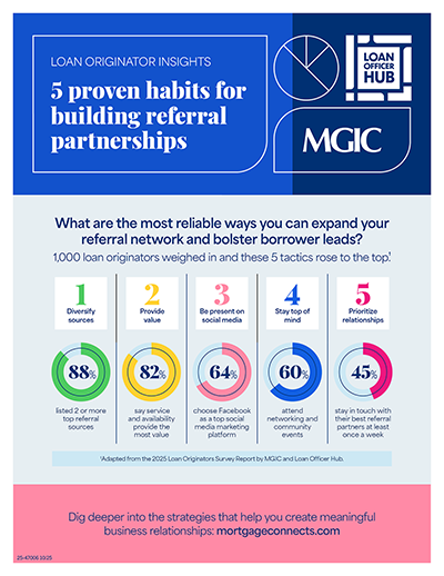 No doubt, the right referral partners will bolster your borrower lead funnel. But how do loan officers build and maintain that all-important referral pipeline? Here are 5 referral activity insights we gleaned from the answers of around 1,000 loan officers who completed our latest Loan Originators Survey.