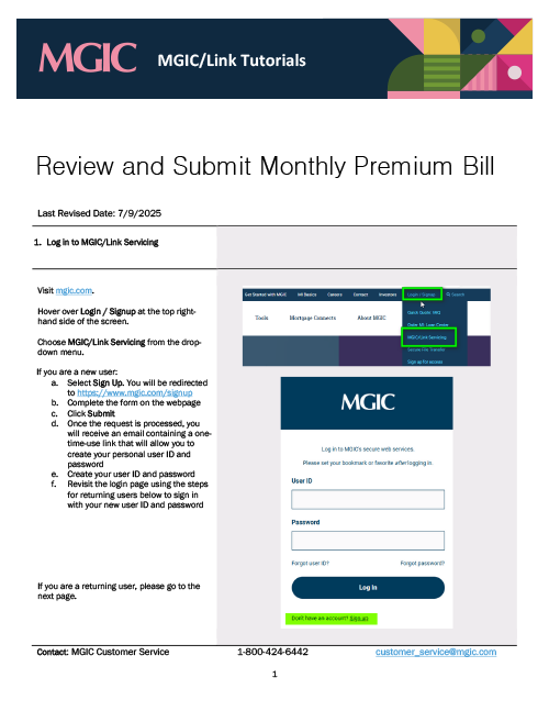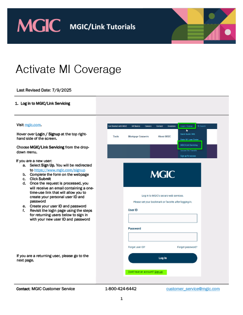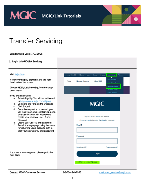 MGIC/Link Servicing Tutorials