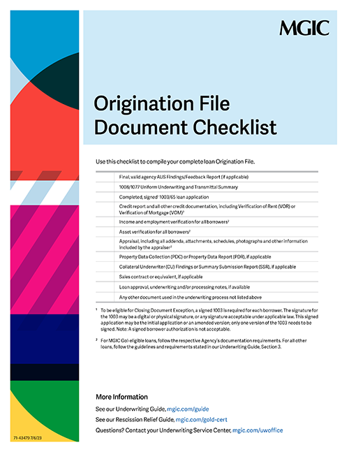 Use this checklist to compile your complete loan origination file.